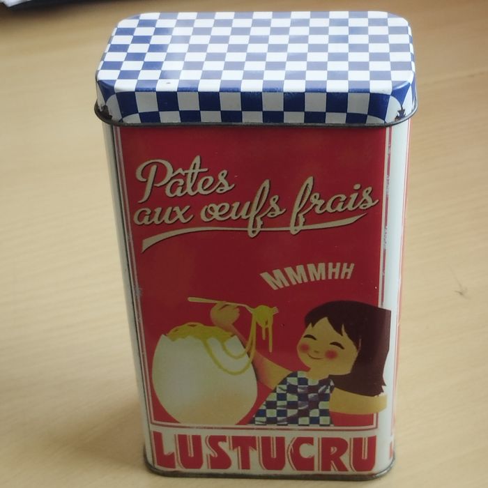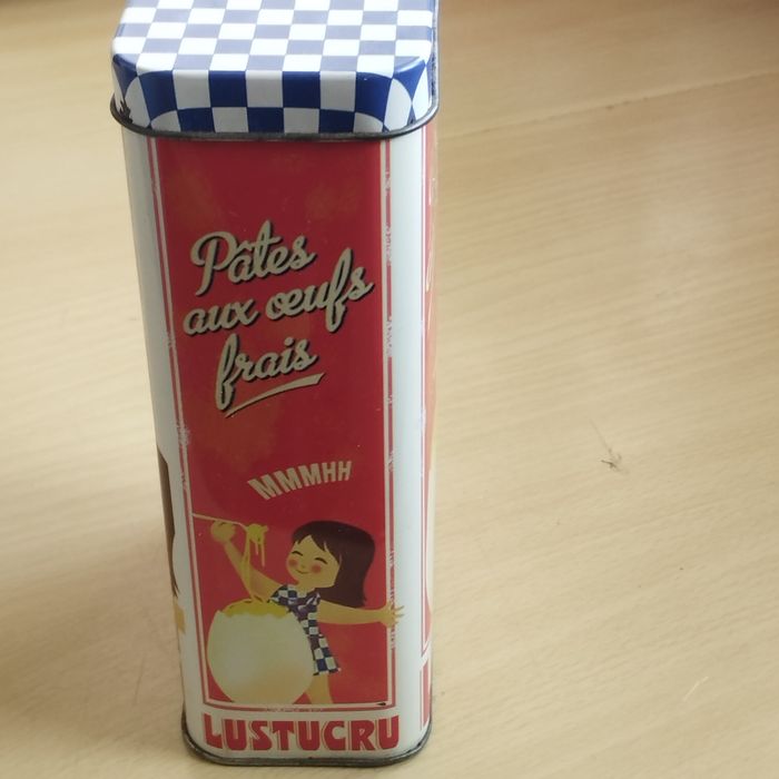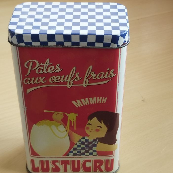 Ancienne boite pour les collectionneurs marque publicitaire Pâtes Lustucru. Vintage. Dimensions Hauteur 16,5cm, Largeur 9,5cm, Profondeur 5cm.