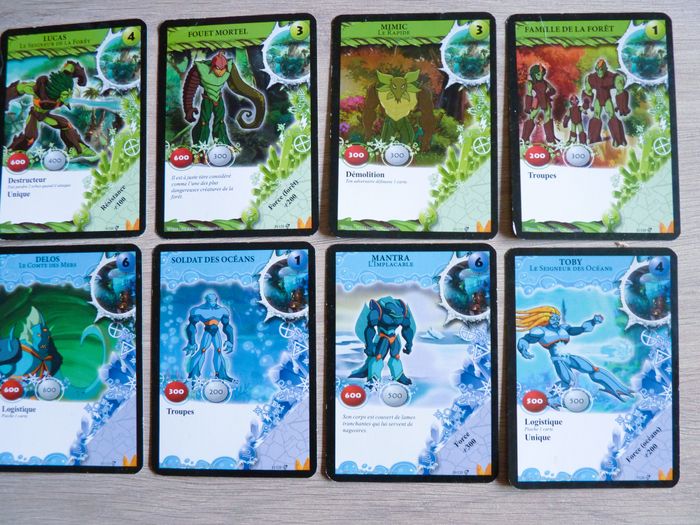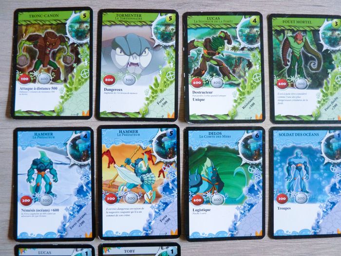 Gormiti Lot de 14 cartes pour collection ou jeu de stratégie Univers garçon - TBE Niveau 1 Toby et Lucas Soldat des oéans Famille de la forêt Niveau 3 Mimic Fouet Mortel Niveau 4 Hammer le prédateur Toby le Seigneur des océans Lucas le Seigneur de la forêt Niveau 5 Hammer le Prédateur Tormentier le Tortionnaire Tronc-Canon Niveau 6 Mantra L'implacable Delos Le Comte des Mers 14 cartes en TBE Envoi ok remise sur troyes brienne
