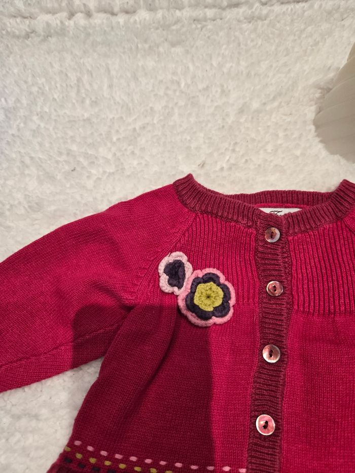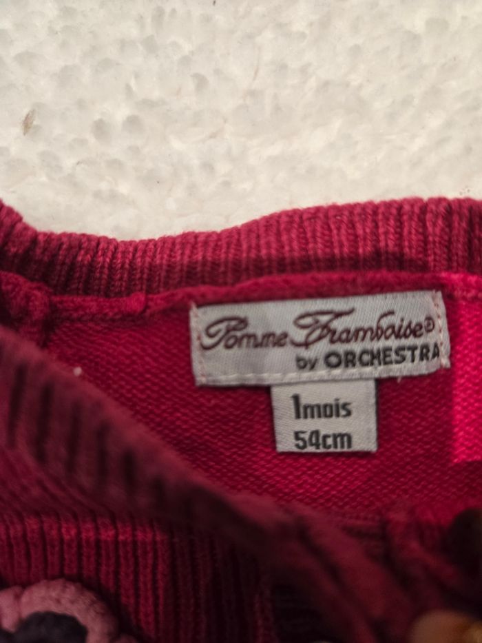 #1moisfille_tatianaalena Joli gilet rose avec fleurs Taille 📏: 1 mois Marque : pomme framboise x orchestra État 🏷️: Tres bon etat Couleur 🎨 : Fuschia