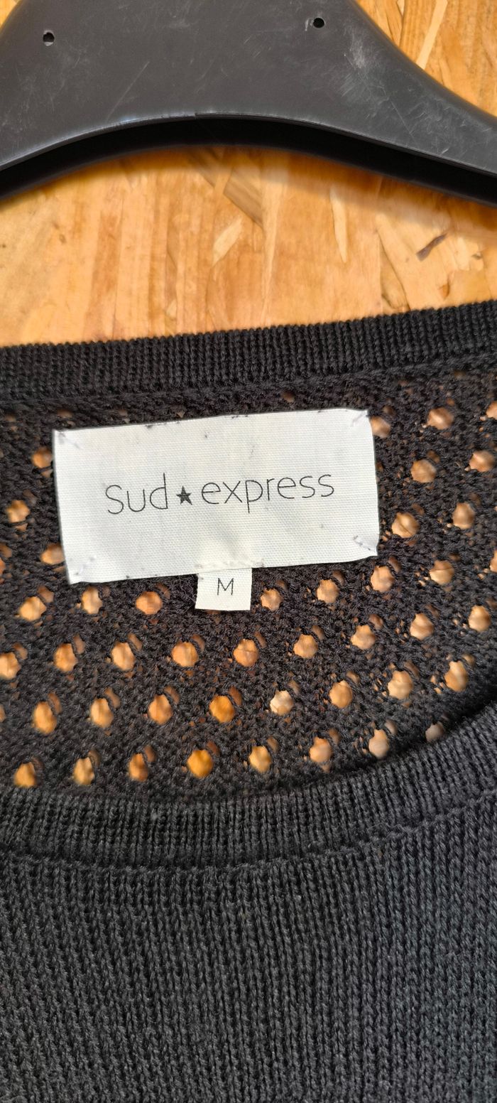 Pull noir en lin ajouré - Sud Express - femme taille M/38