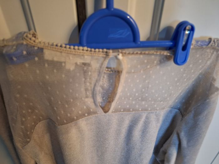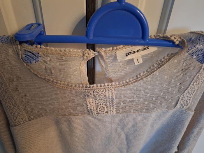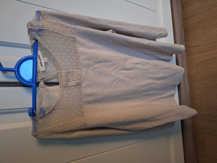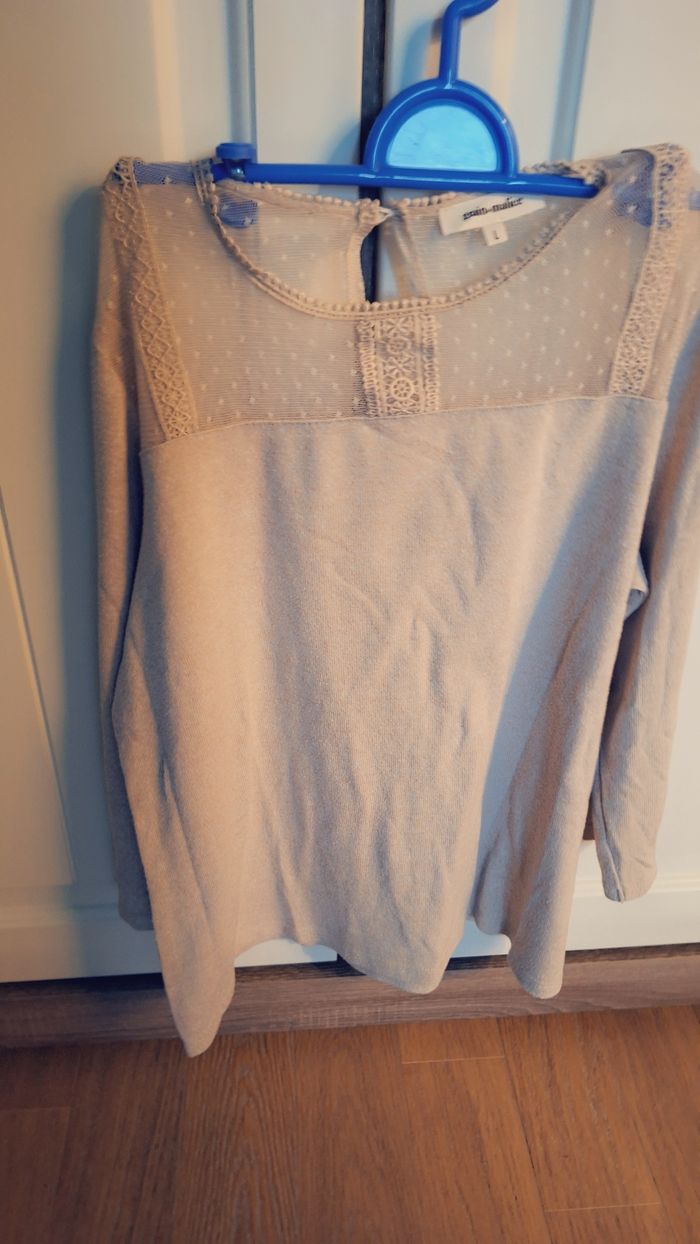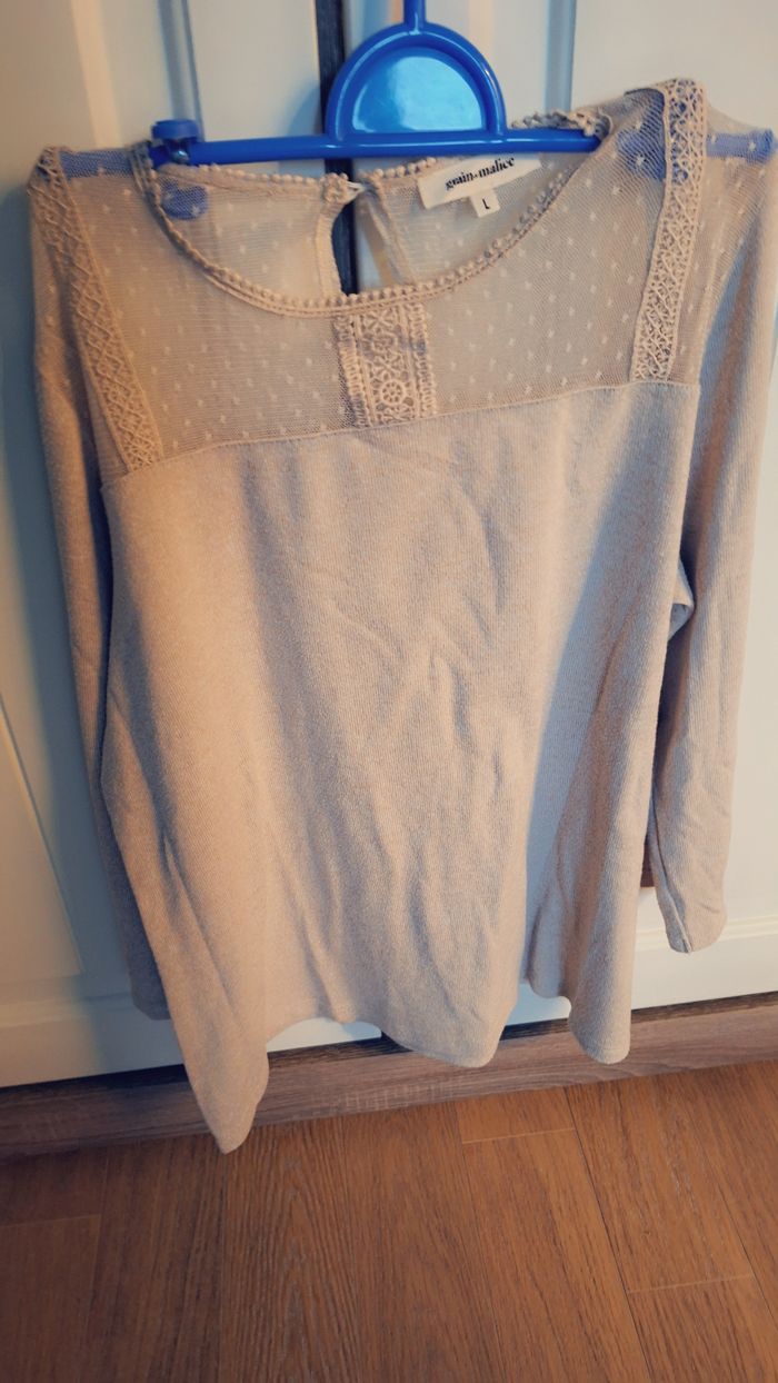 Pull femme manches longues (fin ) Taille L (GDM) Couleur Beige dentelle en haut du pull un peu de bouloche car certainement un peu de lainage mais reste un bel article par les finitions (dentelle ) Prix 3 €