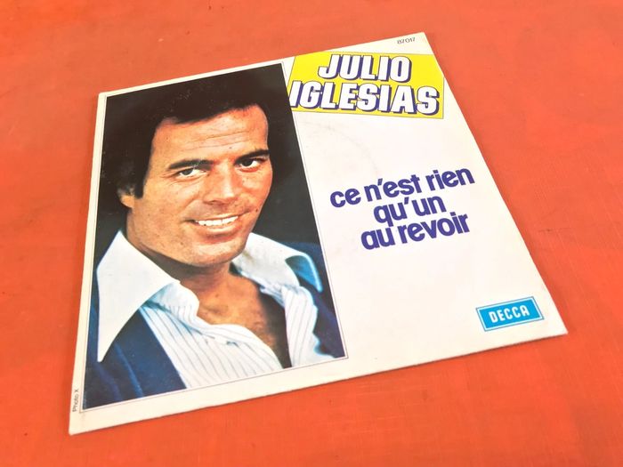 Vinyle 45 tours Julio Iglésias Ce n' est rien qu' un au revoir (1976) Decca 87017 A Ce n' est rien qu' un au revoir Written-By – C. Argall*, K. Munro*, M. Panas* 3:00 B Ne t 'en vas pas je t' aime Written-By – G. Belfiore*, L. Rossi*, P. Delanoë* 3:25