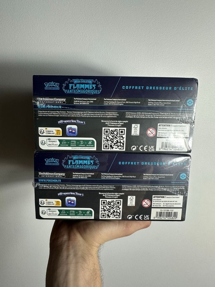 Je vends un lot de 2 ETB Pokémon ME02 – Flammes Fantasmagoriques, toutes deux neuves et scellées. Parfait pour les collectionneurs, investisseurs ou pour profiter d’une ouverture double de cette extension très prisée.