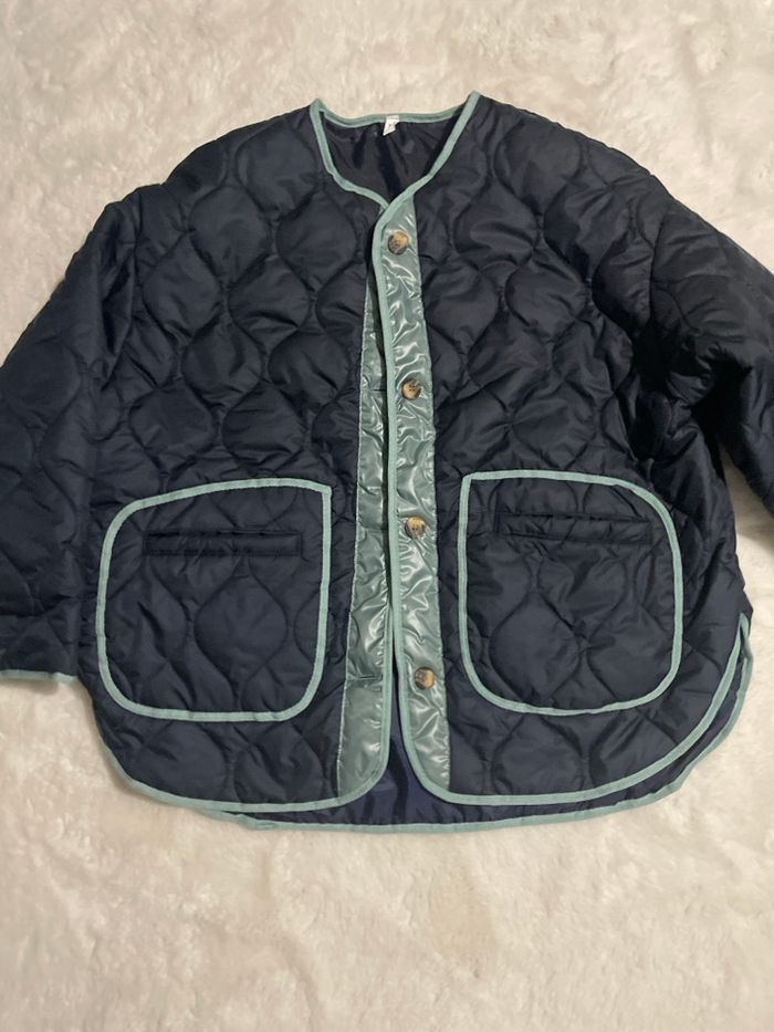 Veste matelassée légère, bleu marine avec contours verts. Coupe ample, idéale pour la mi-saison. Fermeture à boutons, deux grandes poches frontales. Très confortable et tendance type “liner” ✨ En très bon état, peu portée. ✔ Taille : XL ✔ Couleur : Bleu marine / Vert ✔ État : Très bon Parfaite avec un jean ou un look casual chic 🍃 Envoi rapide 📦 #veste #vestequilted #vestelegerematelassée #linerjacket #vintagestyle #bleumarine #tailleXL #oversize #midseason #automne #printemps #lookcasual #tendance #basique #streetstyle