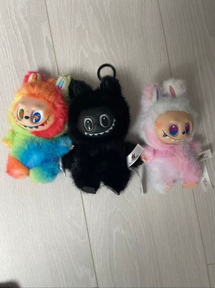 3 labubu neuf boîte fermé,1 labubu multicolore,1 labubu noir et 1 labubu energy V3,les 3 pour 32