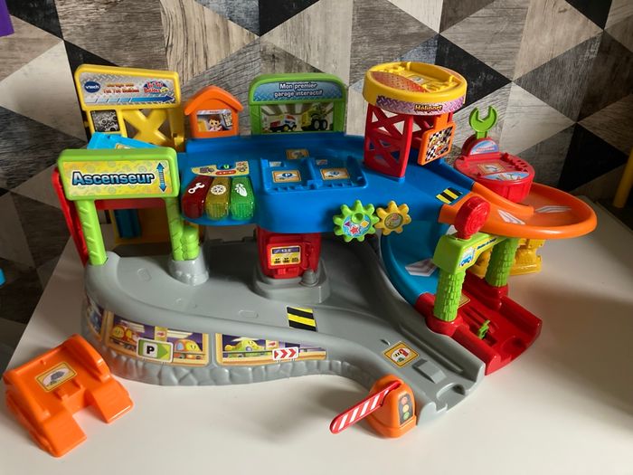 Garage tut tut bolide complet, très bon état vendu avec une tut tut.
