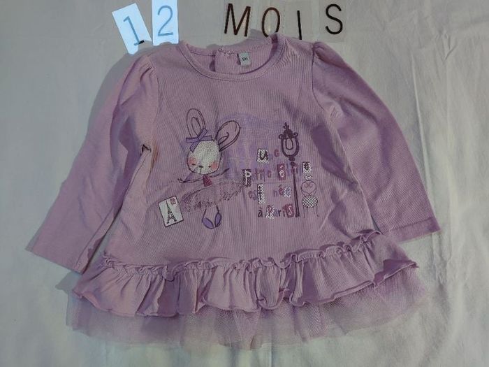 tunique manche longue violet clair, très bon état, 12 mois, sans marque