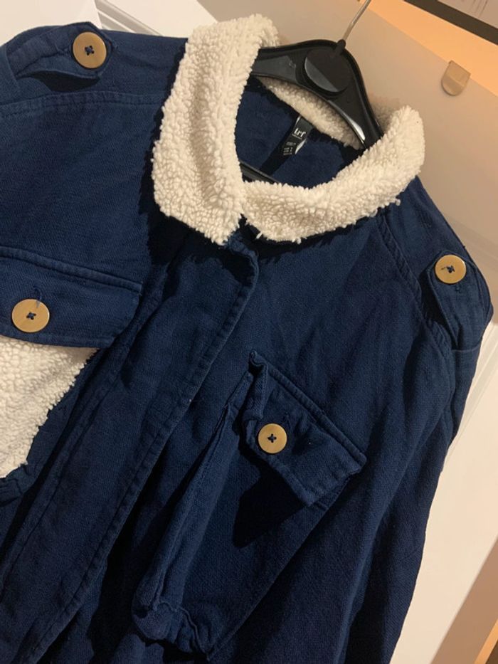 🔝 Veste manches longues Zara bleue marine effet mouton en coton et lin taille S 36 - photo numéro 5