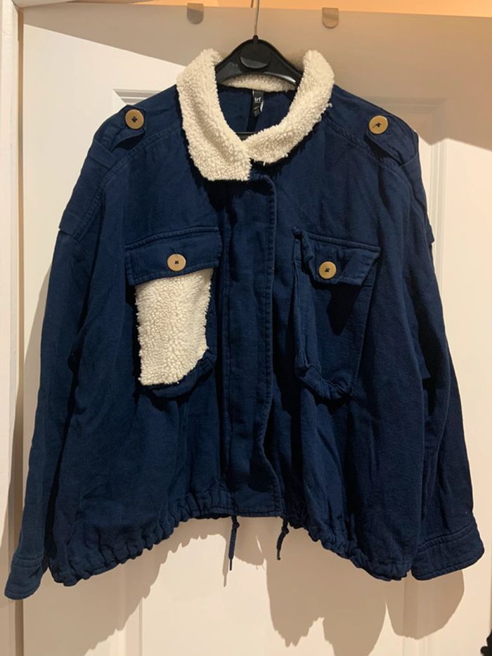 🔝 Veste manches longues Zara bleue marine effet mouton en coton et lin taille S 36