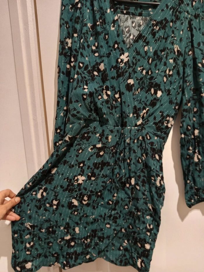 🔝 Robe courte manches longues Lenny B. Paris bleu vert imprimé fleuri taille 2 100% viscose - photo numéro 7