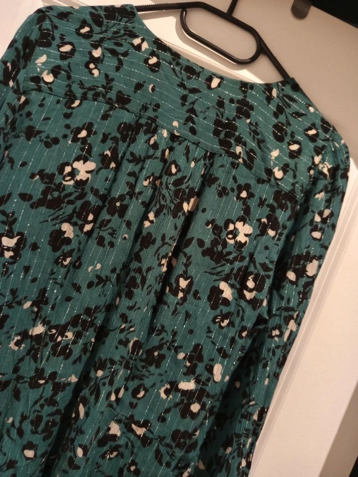 🔝 Robe courte manches longues Lenny B. Paris bleu vert imprimé fleuri taille 2 100% viscose - photo numéro 8