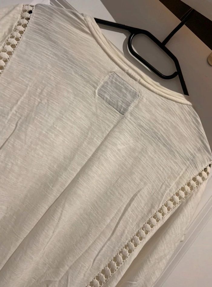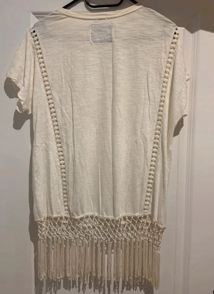 🔝 Haut t-shirt manches courtes Superdry blanc crème avec dentelle pompons et franges taille L 40 - photo numéro 5