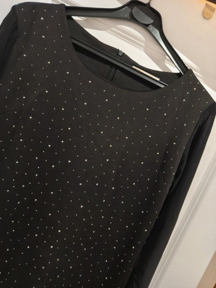 🔝 Robe Blu deise noire a strass argentés avec manches en tulle taille XL 42 en coton et elasthane - photo numéro 2