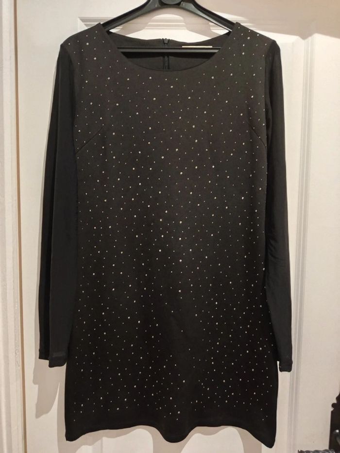 🔝 Robe Blu deise noire a strass argentés avec manches en tulle taille XL 42 en coton et elasthane - photo numéro 1