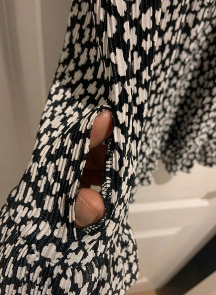 🔝 Combishort manches courtes Pull&Bear noir et blanche imprimé fleuri taille M 38 en polyester - photo numéro 5