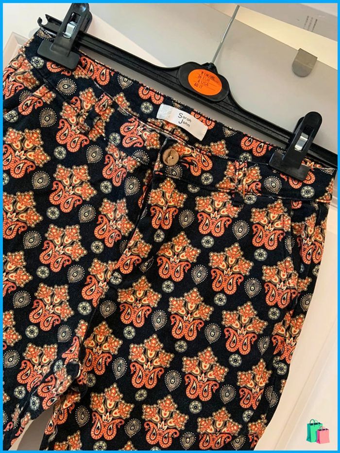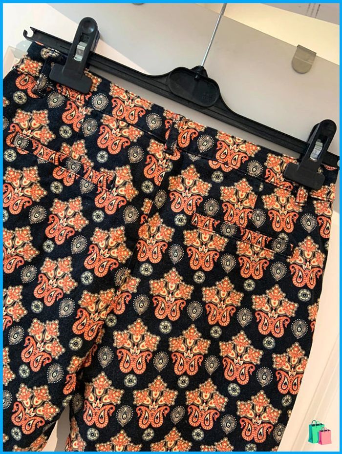 🔝 Pantalon carotte Sarah John imprimé arabesques noir et orange taille M 38 en coton et elasthane - photo numéro 4