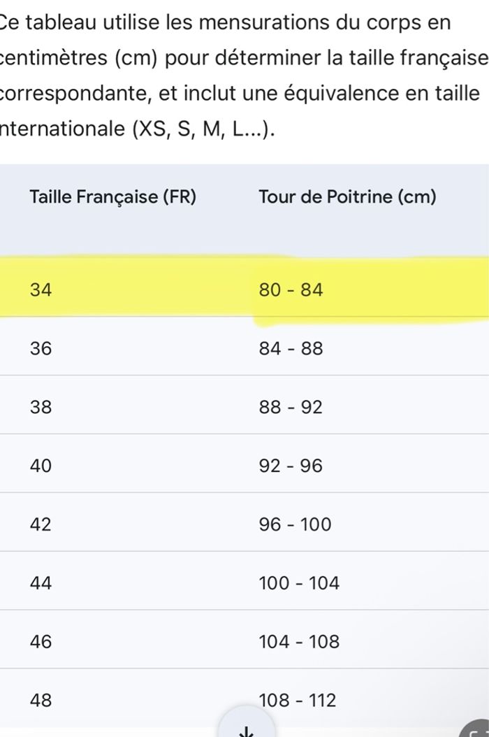 Il est noté sur l’étiquette S mais selon deux guides de l’IA,il en ressort taille XS/34.