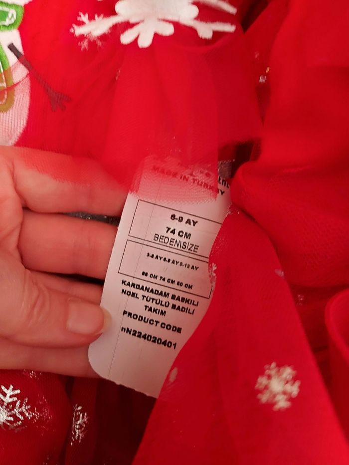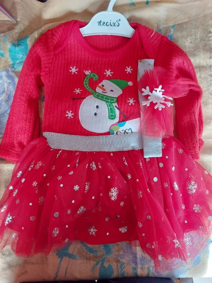 Ensemble de Noël, bébé fille, composé d'un body en velours, d'une jupe en tule et d'un bandeau Necix's Taille 6-9 mois/74 cm Neuf