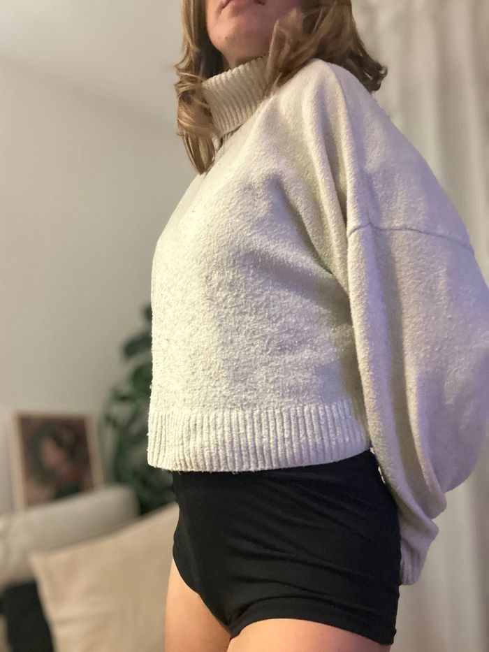Taille M Magnifique pull col roulé stradivarius Il taille court ce qui le rend super beau 🌞 Je l’ai porté plusieurs fois et je me vois le vendre pour faire de la place