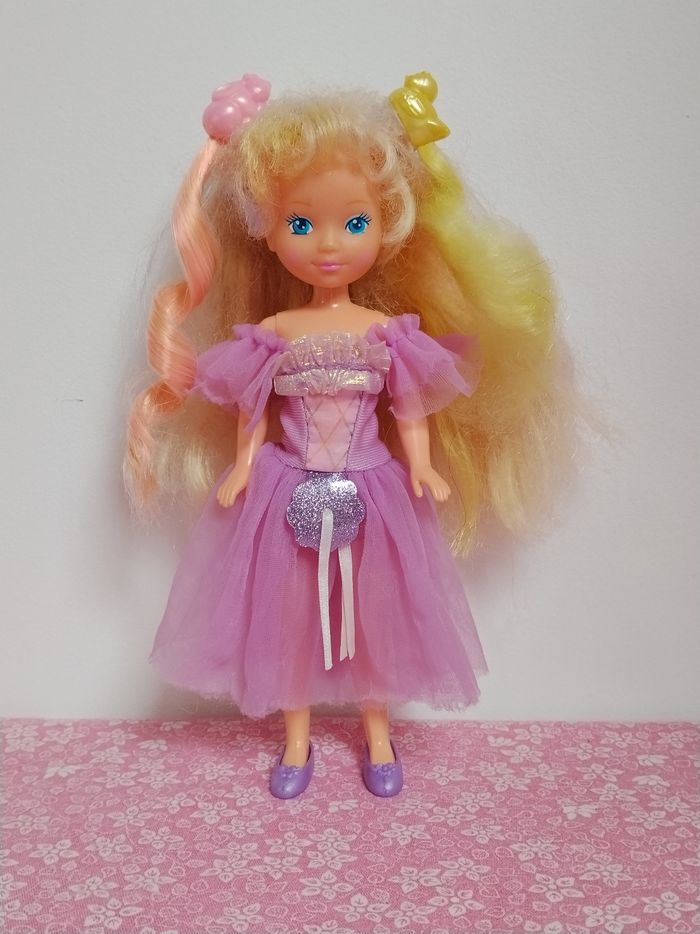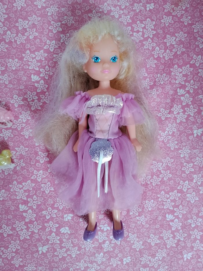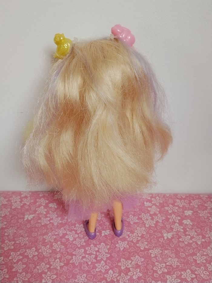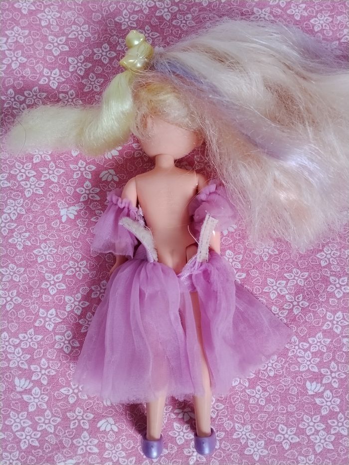 Poupée vintage Lady Lovely Locks ballerine avec 2 minicouettes,Mattel 1986,la robe est un peu abîmée ,la minicouette jaune est un peu crépue,elle a encore ses chaussures ,le cou n'est pas cassé,bien regarder toutes les photos,maison non fumeur, envoi par mondial Relay uniquement