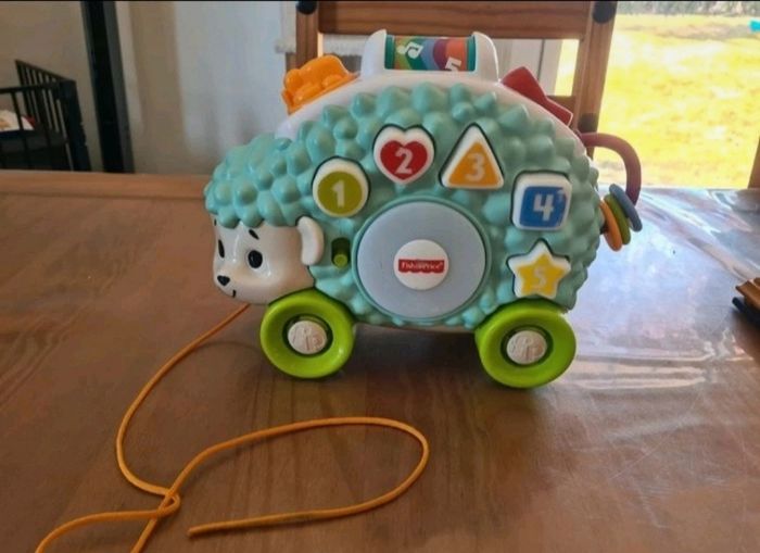 Enfin, équipé de roues et d’une corde, ce petit hérisson se transforme en jouet musical à tirer et à faire rouler pour s'amuser.