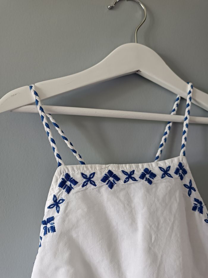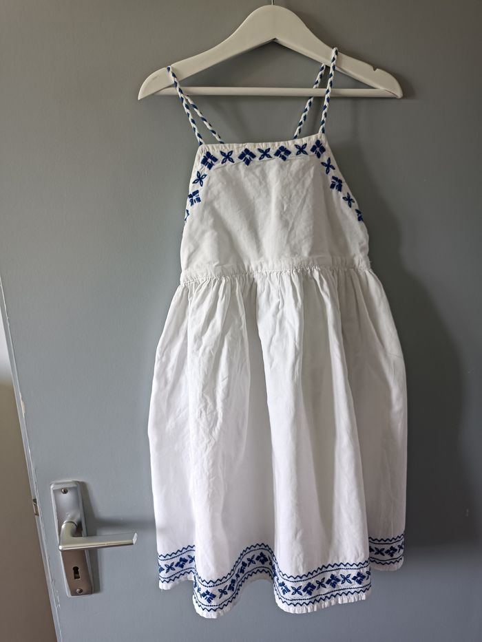 Superbe robe d’été blanche avec jolis motifs brodés bleus. Bretelles fines, coupe légère et confortable. Taille : 8 ans Très bon état ✔️ 👉 Envoi rapide 📦 👉 Dressing moderne & à petit prix ✨ 👉 Découvre aussi mes autres articles dans mon dressing