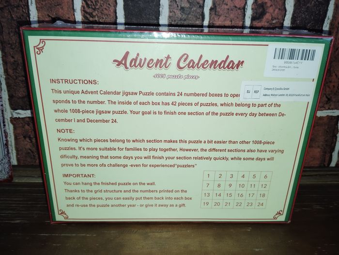 Calendrier de l'avent puzzle de Noël, neuf sous blister. Chaque case contient 42 pièces, une fois terminé le 24 décembre c'est un puzzle de 1008 pièces qui mesure 50 par 70 cm.