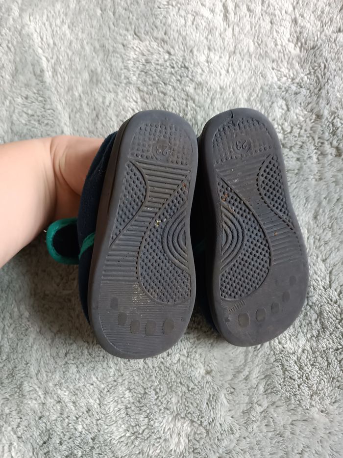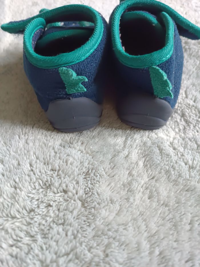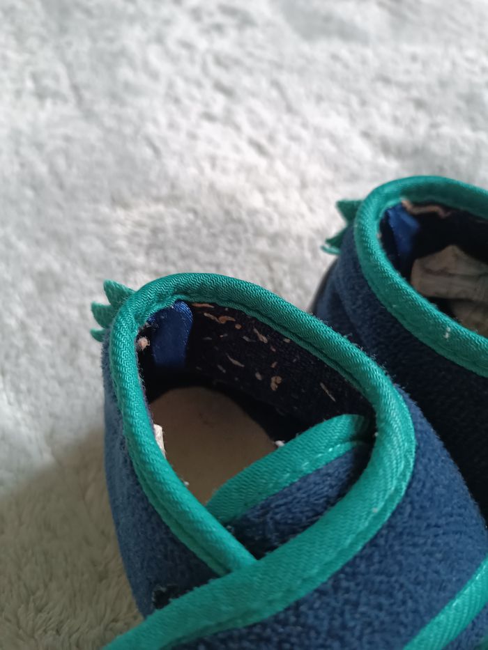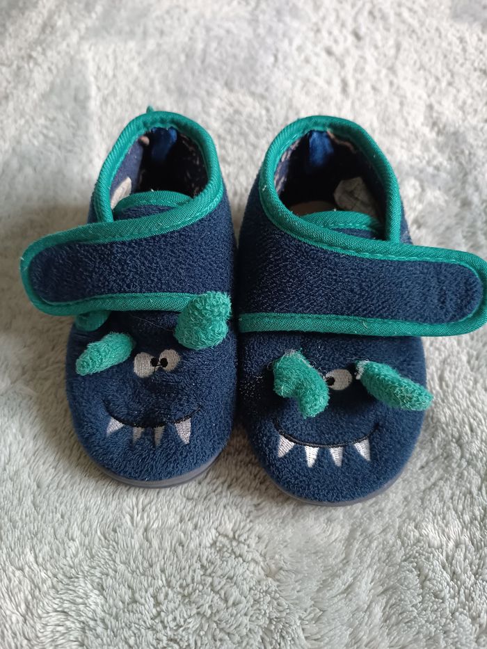 Adorables chaussons bleu marine avec tête de petit monstre en relief. Intérieur doux, fermeture scratch pratique, parfaits pour garder les pieds bien au chaud 👶💙
