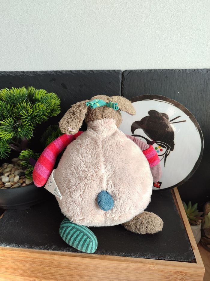 Peluche musicale Chien Les Jolis Pas Beaux moulin roty beige rond rayé Vert Rose - photo numéro 1