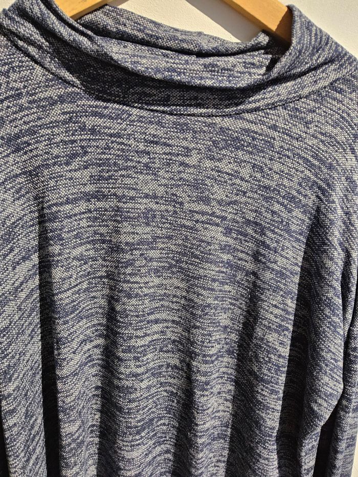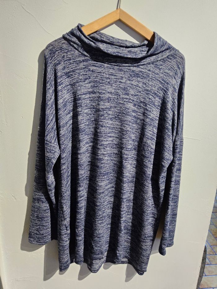 🛍️ Haut manches longues bleu chiné – Tendance & confortable Taille : 52/54 (convient jusqu’au XXL) État : Très bon état Magnifique haut ample à manches longues, coloris bleu/gris chiné. Matière douce et stretch, parfaite pour un look décontracté ou chic selon l’association. Col drapé élégant, coupe fluide qui tombe très bien. 👉 Idéal pour l’hiver et la mi-saison. 👉 Aucune tache, aucun accroc.