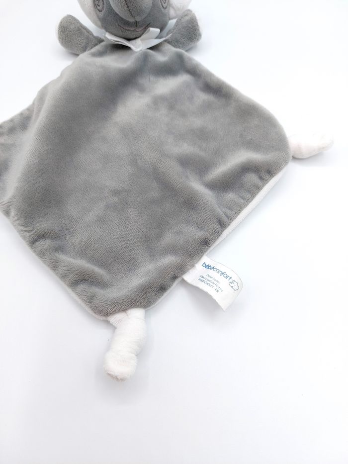 Doudou plat éléphant gris blanc BEBE CONFORT nœud spirale bébé confort