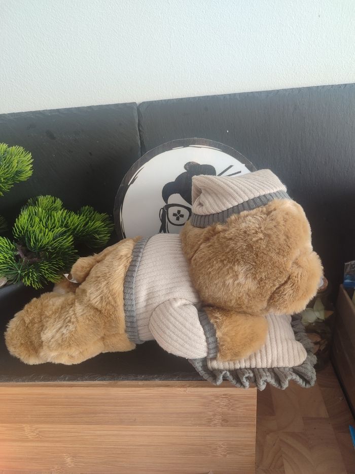 peluche ours endormi fort coucher oreiller bonnet nuit marron beige gris Dormir - photo numéro 1