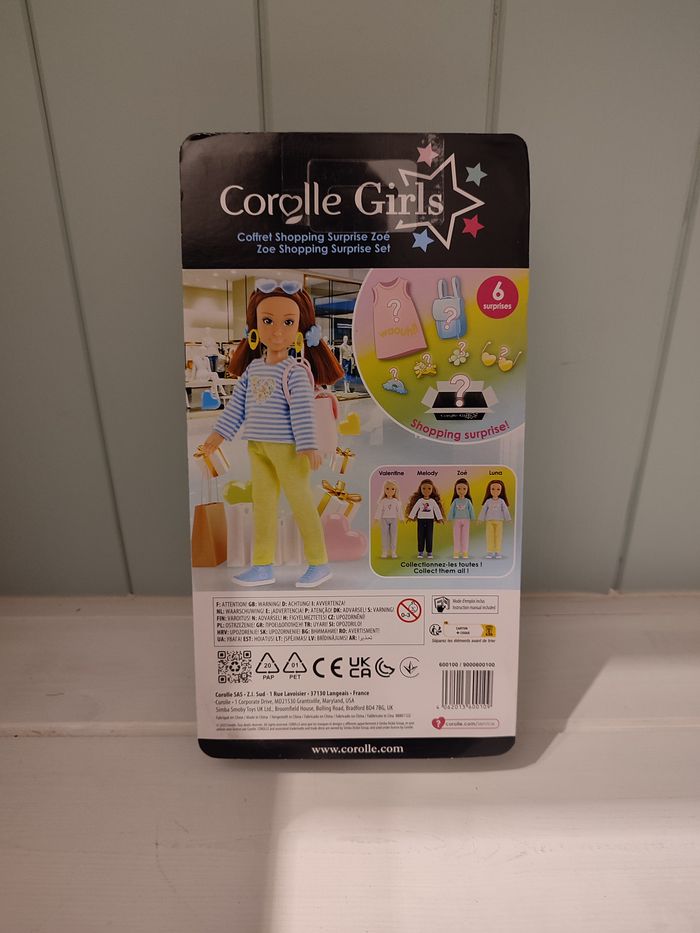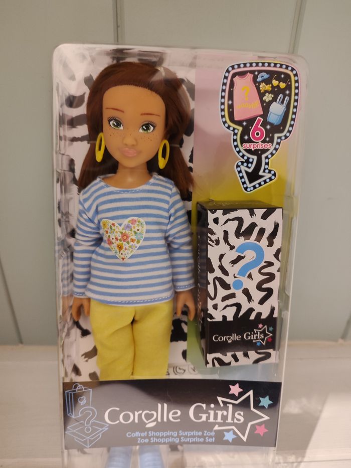 produit neuf Corolle girl envoi rapide et soigné Ce coffret Zoé Shopping contient : 1 poupée de 28 cm 1 robe 1 sac à main 1 paire de lunettes de soleil 3 pinces à cheveux