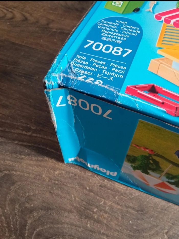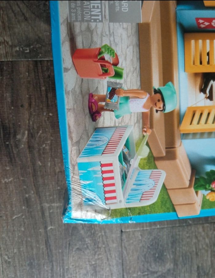Camping playmobil 70087, boîte scellée jamais ouverte, abîmée sur un angle voir photos.