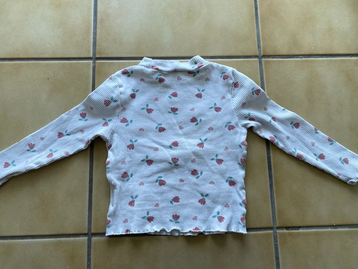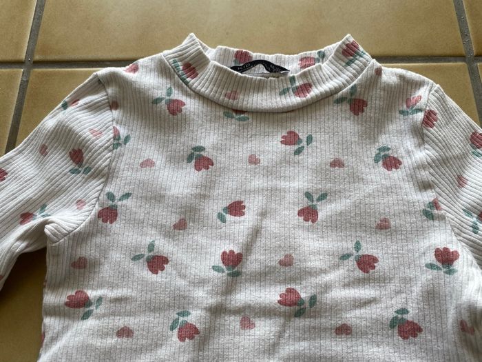 Tee shirt fashion private company kid Blanc fleurs rose et verte Taille 4 ans