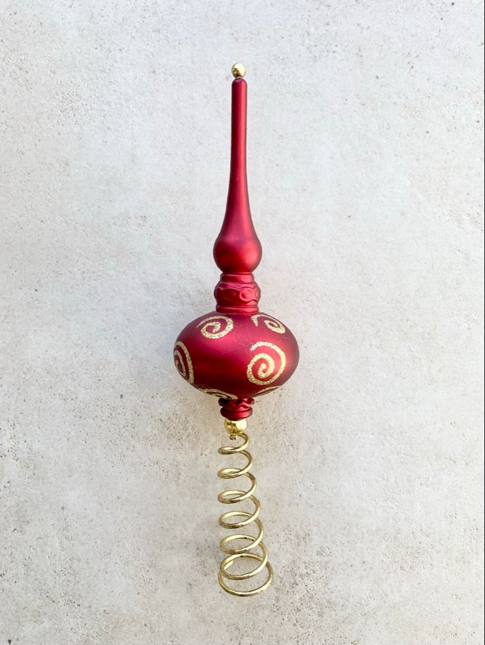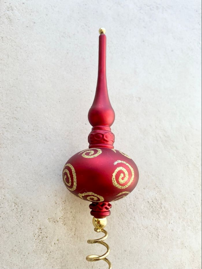 Rouge et doré Particulièrement raffiné avec des tourbillons, un embout doré en serpentin, et son ensemble formé d’une base ovale et pointe doré