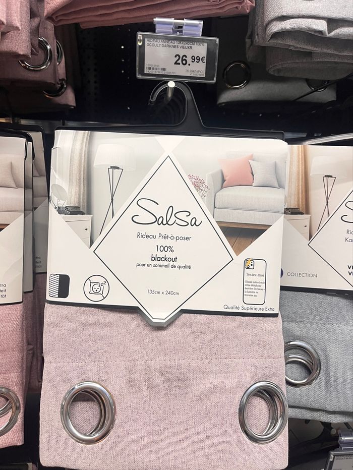 Rideau occultant rose avec oeillets métalliques 100 % polyester Dimension : 135 × 240 cm