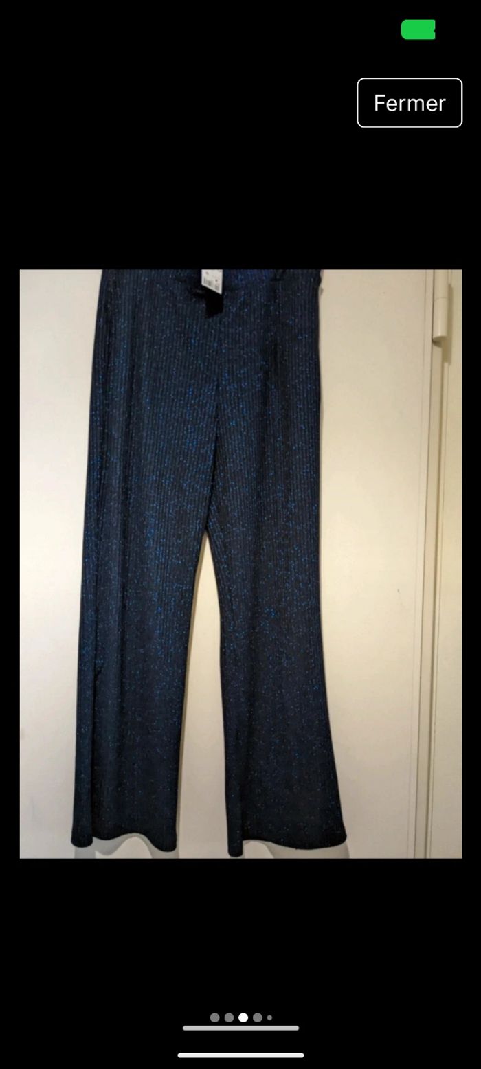 Magnifique pantalon Kiabi bleu marine à jambes larges en maille côtelées et pailleté. Taille 42 - photo numéro 9