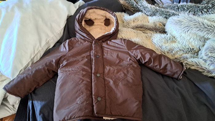 Manteau d'hiver bébé 18 mois, fermeture par boutons pressions, petite pochette à l'intérieur, rembourré. Peu porté.