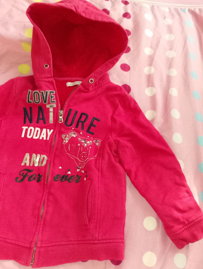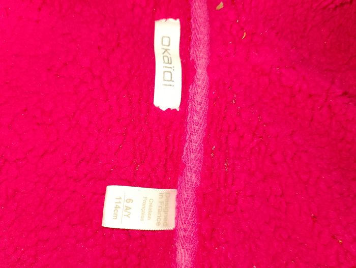 Gilet épais Okaïdi 6ans Taille plutôt petit, 4-5 ans Quelques traces "de colle" ? Voir photos