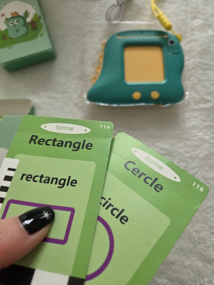 Jeux éducative pour apprendre les mots en français et en anglais. Le jeu est neuve mon fils a juste testé 2 cartes qu'il a un peu abîmé voir photo mais il n’a jamais joué avec ensuite, la tablette n’a même jamais était mises en charge le chargeur est encore attaché mais la tablette est fonctionnelle