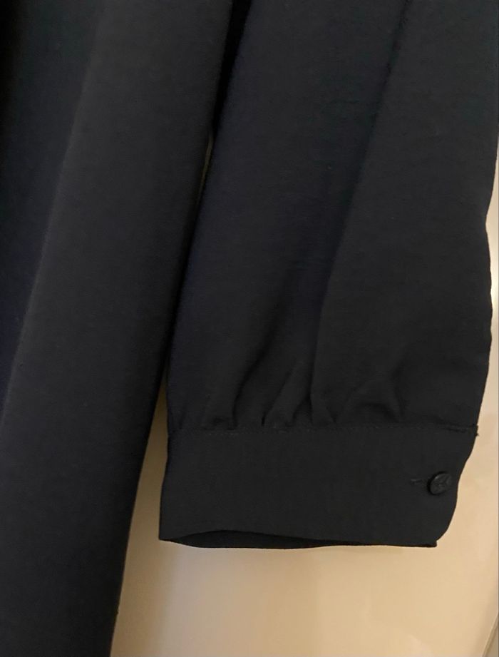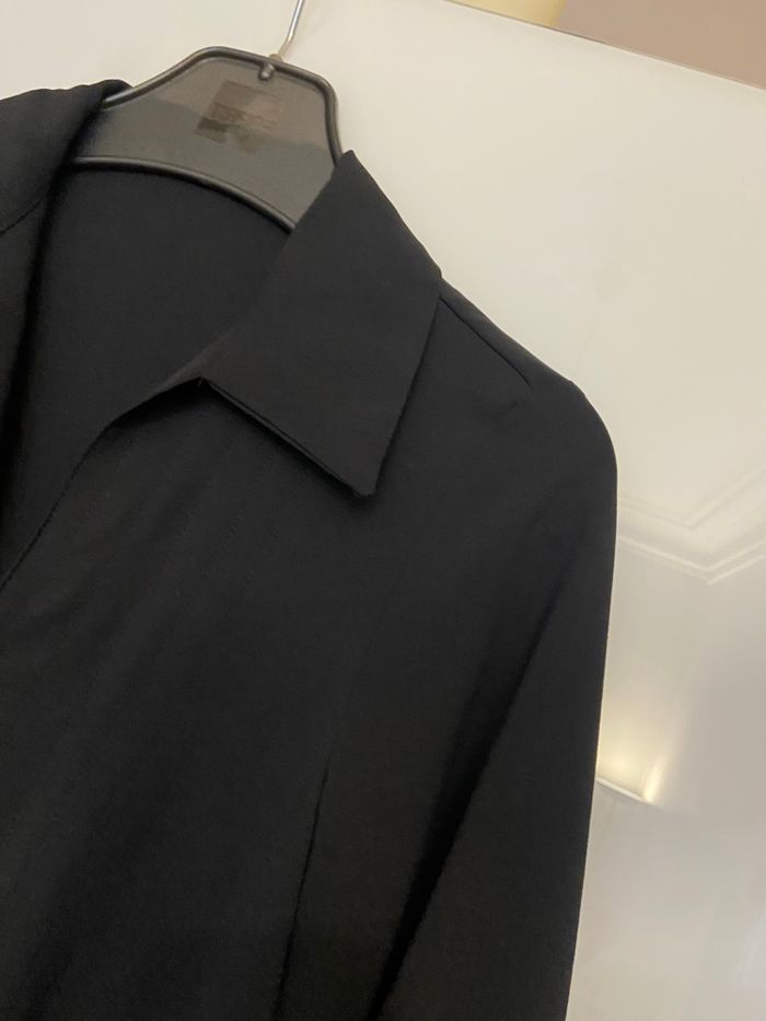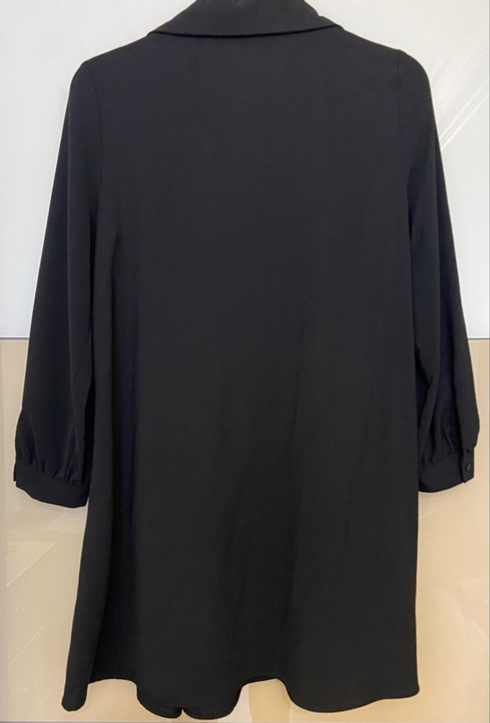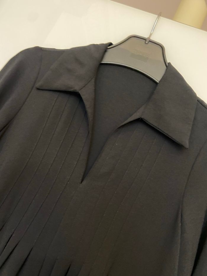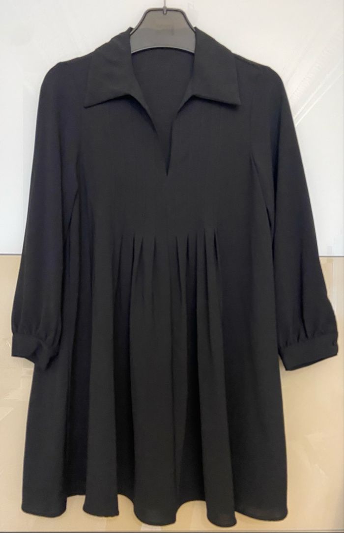 Robe noire avec col à revers, décolleté en V et manches longues. Coutures sur le devant avec pinces. S Polyester Dimensions 38x84 cm