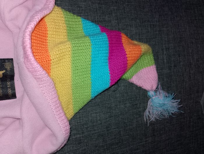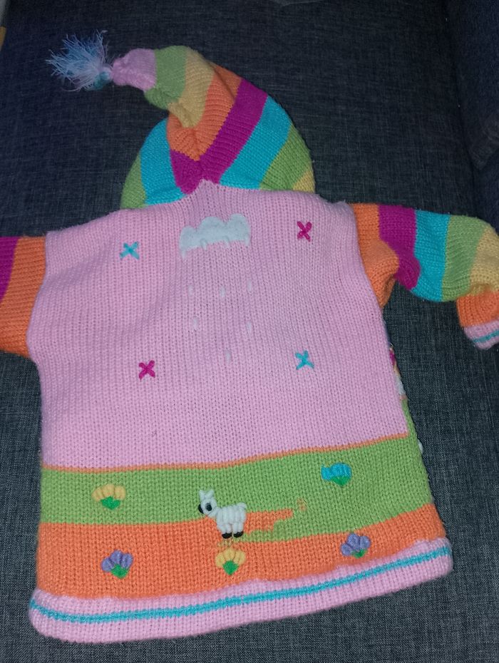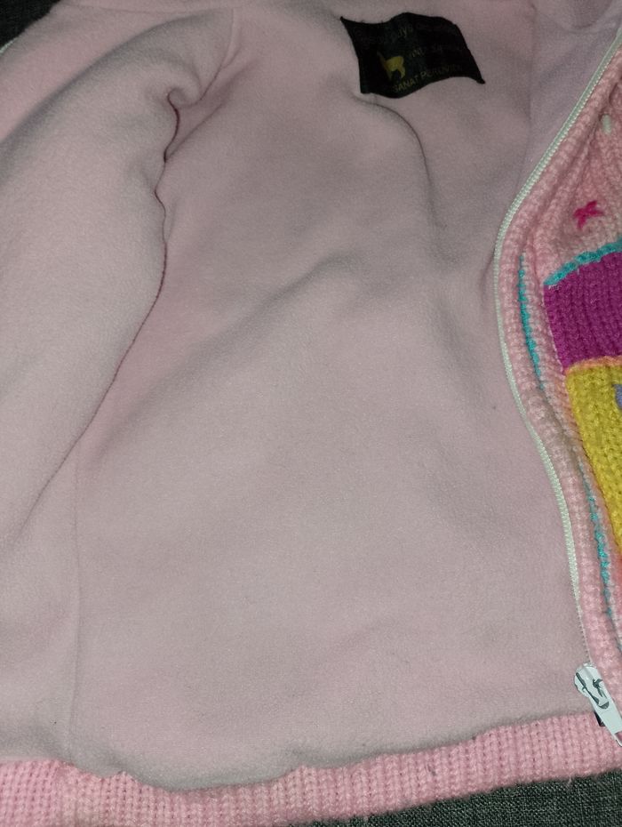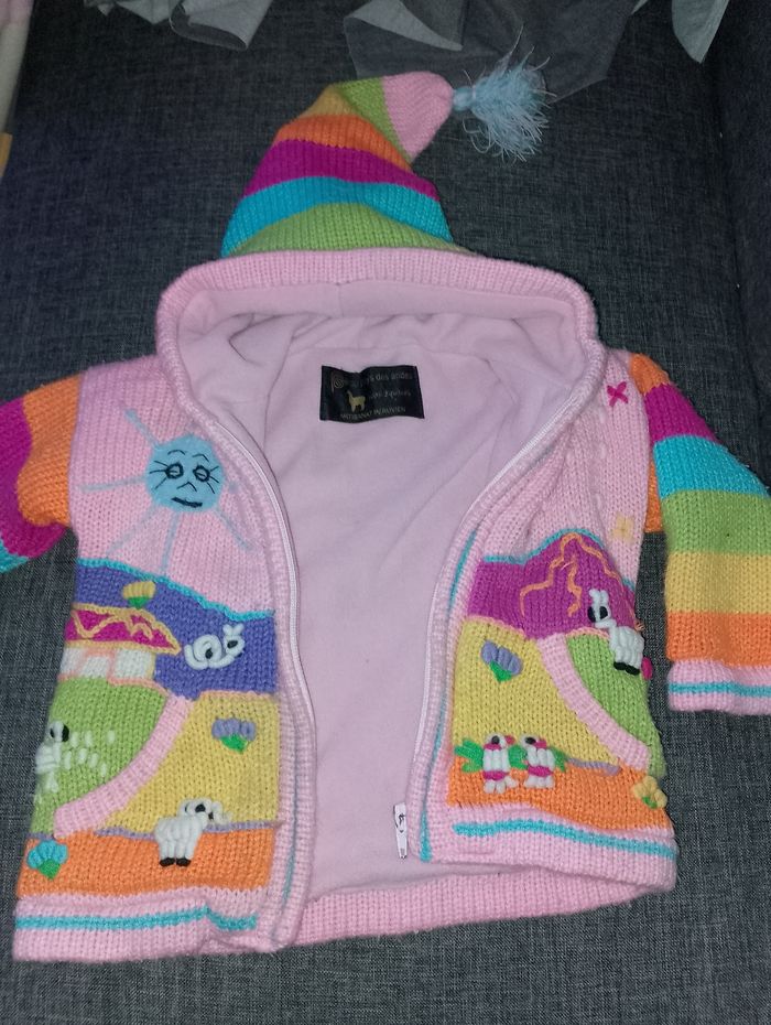Gilet épais interier polaire Péruvien 4 voir 5 ans environ Avec fermeture éclair et capuche pointu avec pompom Perou pays des Andes 100% équitable Artisanat Péruvien