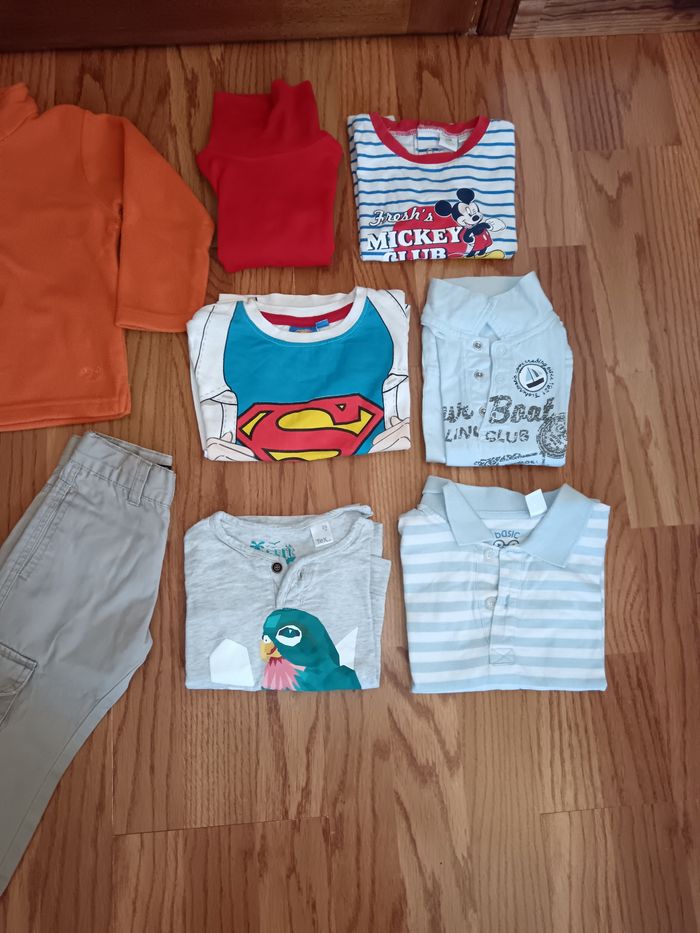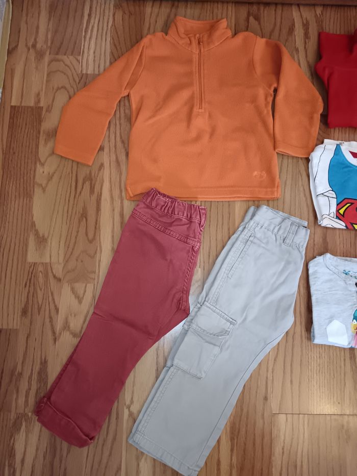 A noter 2 petites tâches sur le pantalon cargo, dans la partie basse arrière du sous pull et au niveau du bouton d'un polo d'où le mini prix du lot