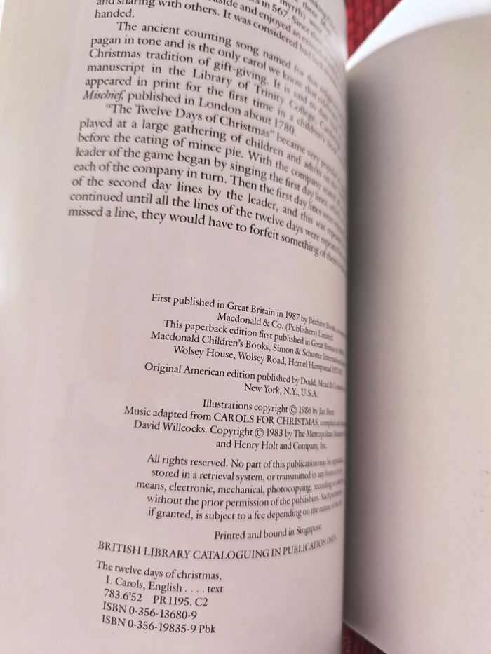 Livre ancien de Noël "The twelve days of Christmas" - Jan Brett