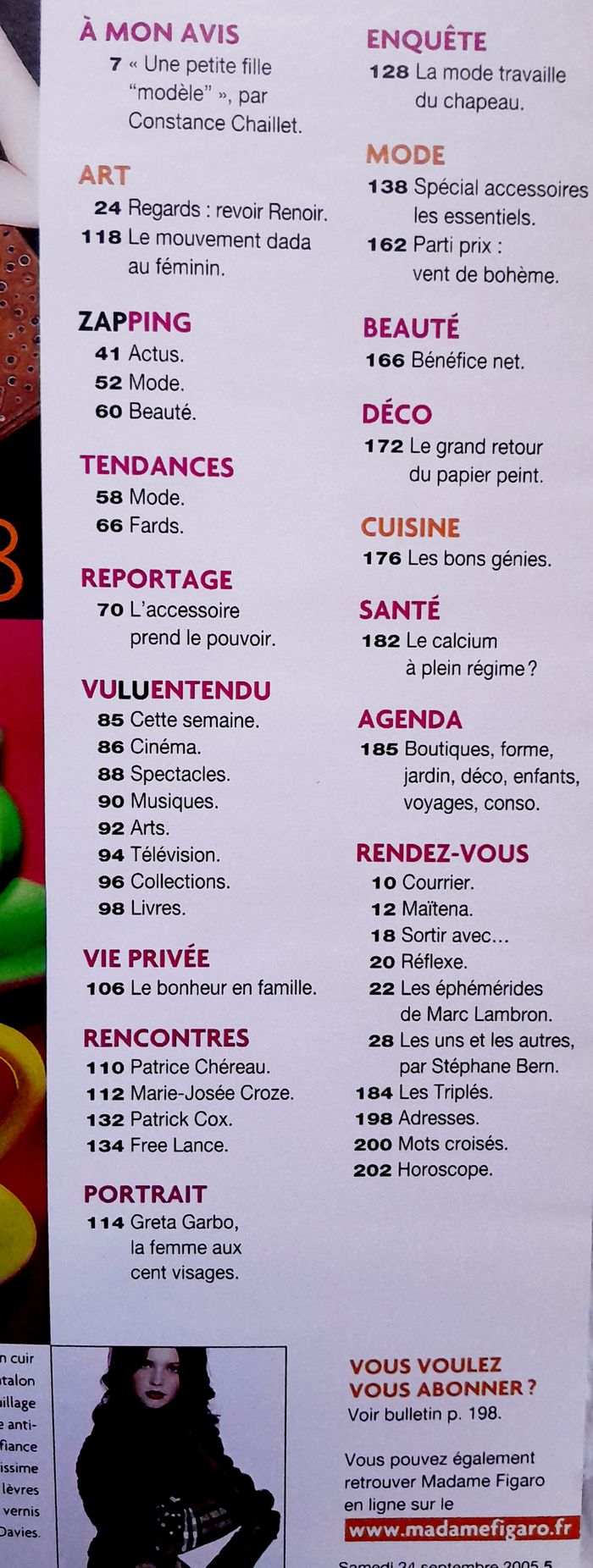 Magazine Madame Figaro n°1100 septembre 2005 spécial Accessoires