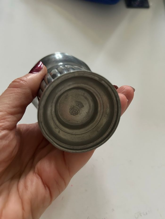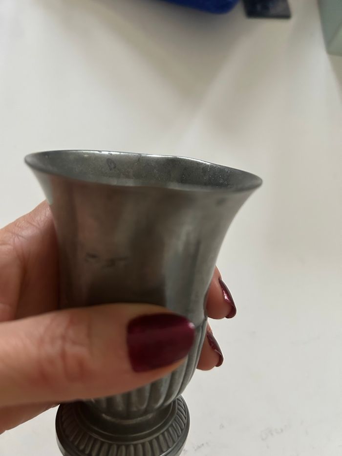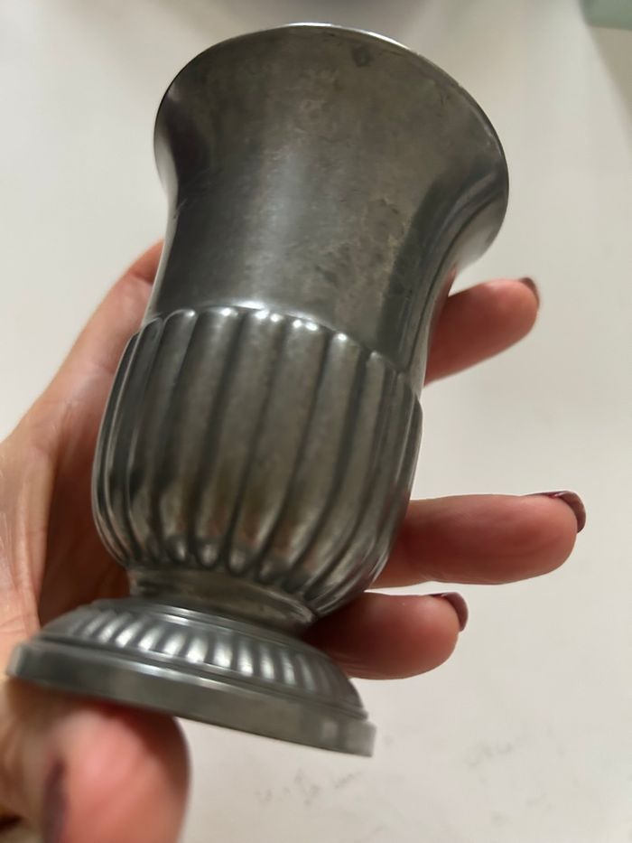 Je vends cette timbale vintage en étain, un bel objet de collection pour les amateurs de pièces anciennes.