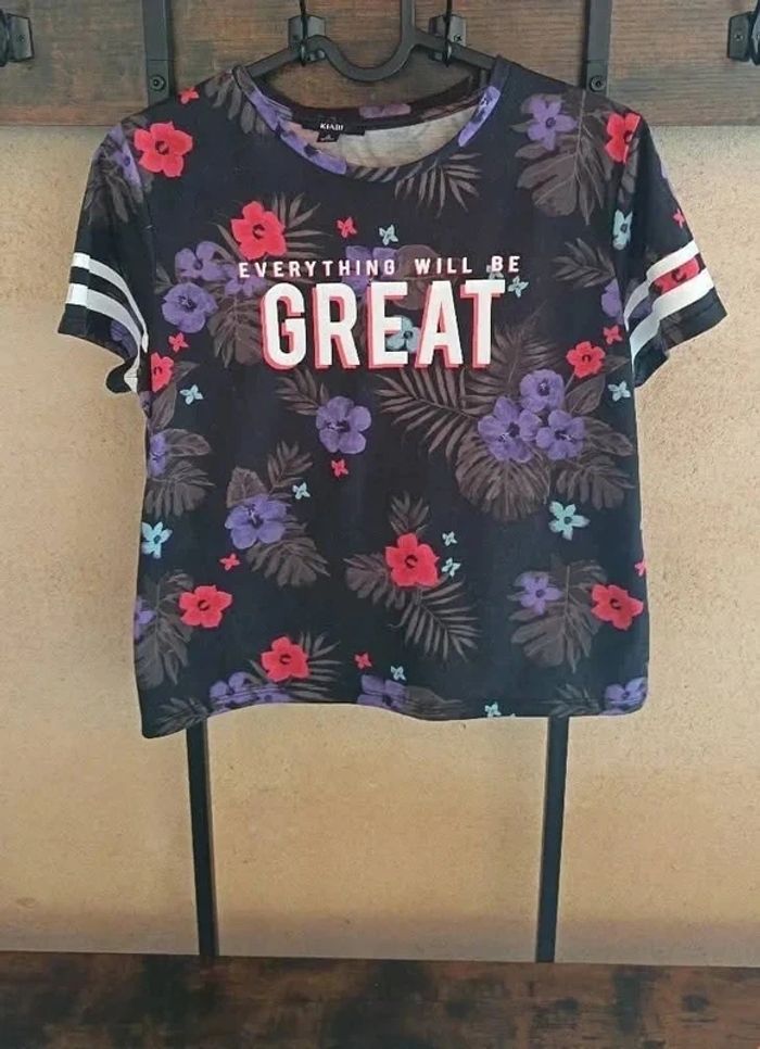 Tee-shirt court Flowers Marque : Kiabi Taille : 16 Ans Prix : 4€ Très Bon état Disponible immédiatement 📦 Envoie rapide et soigné Remises activé sur l'achat d'un lot 🖤