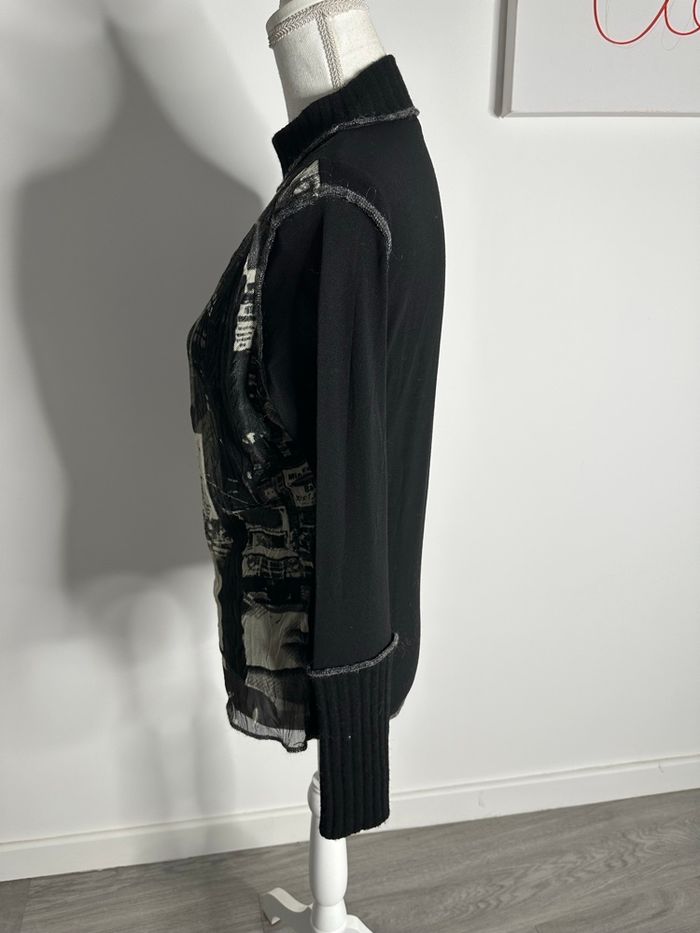 Blouse pull mesh et maille noire et beige Y2K Vintage T42 XL - photo numéro 3
