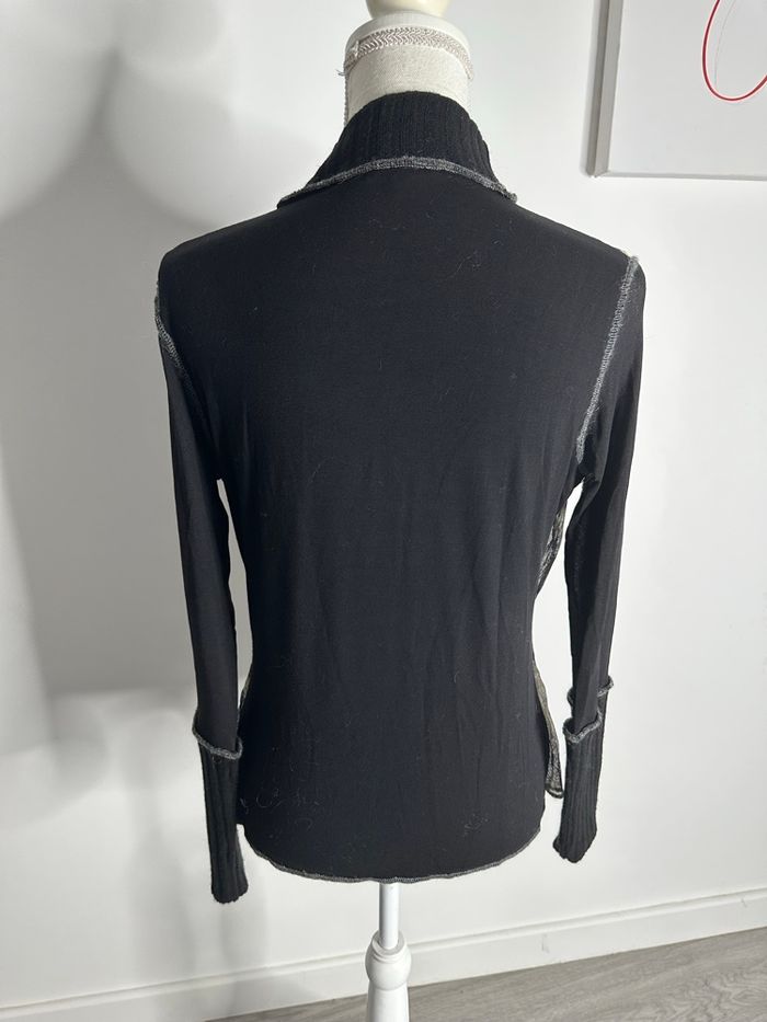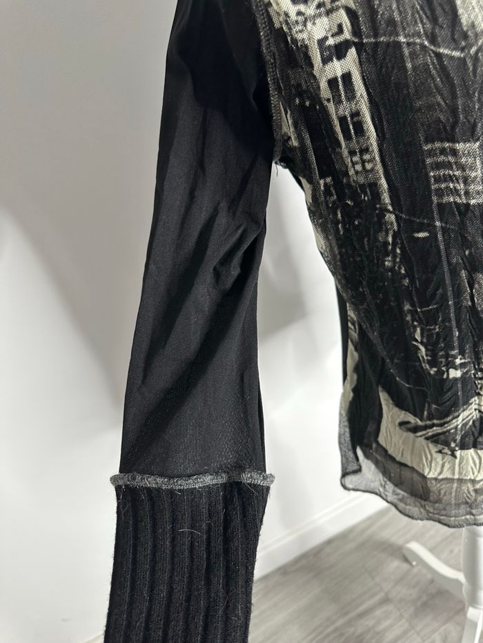Blouse pull mesh et maille noire et beige Y2K Vintage T42 XL - photo numéro 7